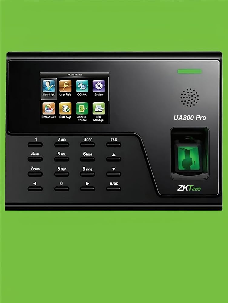 The ZKTeco UA300 Prois a top-tier biometric time attendance terminal built for reliability, scalability, and flexibility. With a robust firmware platform, ultra-fast matching, and networked management, UA300 ensures seamless workforce tracking in a wide variety of industries—from offices and factories to schools and retail outlets.